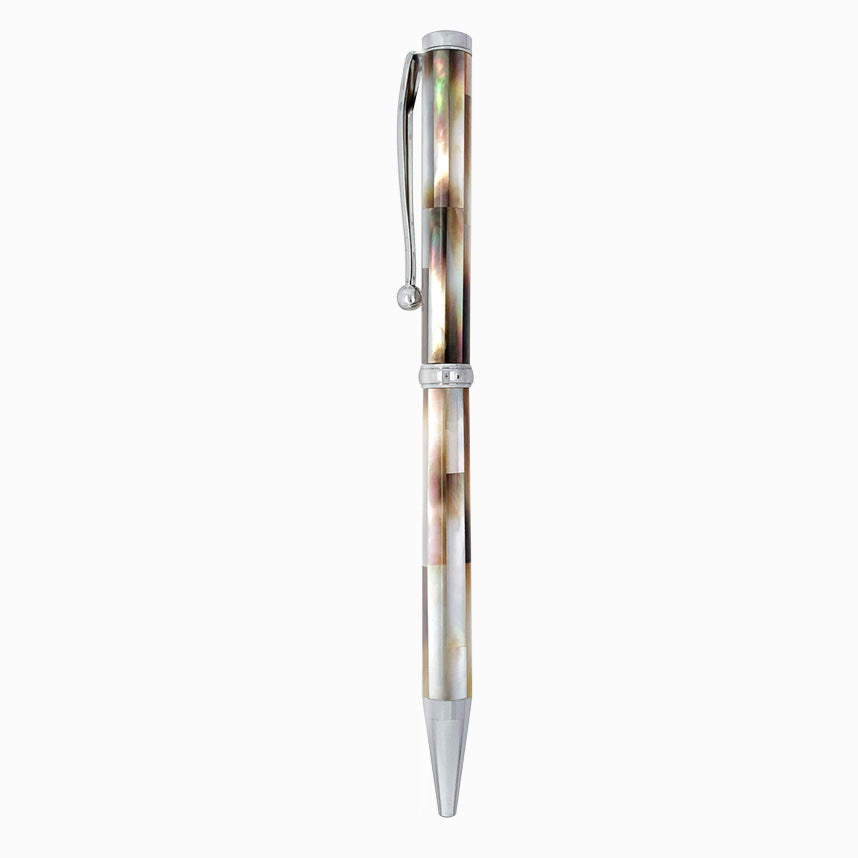 Chrome ballpoint pen in rectilinear mother-of-pearl