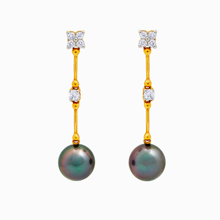 An exquisite Tahitian pearl earrings in 18k yellow gold with diamonds set on a elegant design setting.
