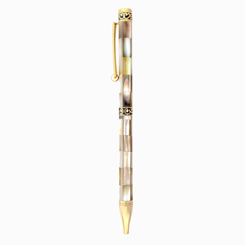 Yellow gold-plated ballpoint pen in mixed wave mother-of-pearl